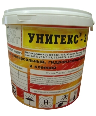 Состав «Унигекс®-2» состоит из двух компонентов. Приготовление состава производится их смешением непосредственно перед производством работ в соотношении 1 и 2 компонентов 1:1,5 в весовых частях (К1:К2 – 1:1.5); в емкость с компонентом 2 выливается 1 компонент и смешение производится дрелью-смесителе